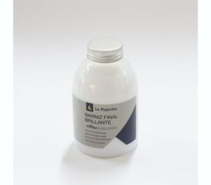 El barniz Brillo de La Pajarita es un barniz al agua que podemos utilizar en en múltiples superficies. Acabado brillante, transparente y muy resistente al paso del tiempo y humedad. Proporciona una película protectora de alta dureza y gran transparencia. No amarillea.